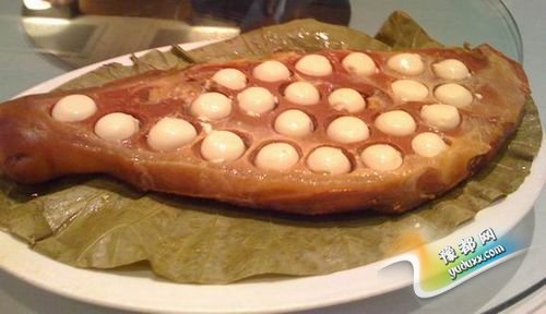 而现代厨师依法炮制,先把一只火腿剖开,挖二十四个圆孔,将豆腐削成二十四个小球分别放入孔内,扎住火腿再蒸,等到蒸熟,火腿的鲜味已全到了豆腐之中,火腿却弃去不食。这整只极品火腿,却是提前以特殊方法用二十四种珍贵食材腌制二十四个时辰。小小的豆腐,吸收了如此多的美味,怎生一个好字了得。