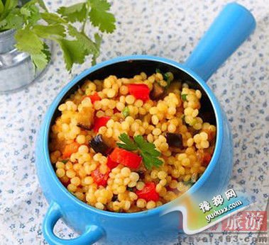 以色列库斯库斯,被称为是小粒粒的意大利面。是由semolina这种硬质小麦做出来的,吃的时候也是滑滑的口感,只不过是造型不一样,所以我把它当作小粒粒的意大利面。