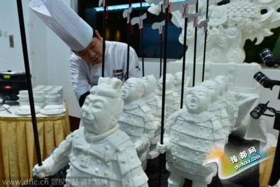 最吸引眼球的是一组32个兵马俑糖粉雕塑(来源:东方IC)