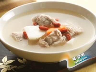 制法:将兔肉洗净切成块,姜切片,山药切块,枸杞用温水泡好;点火锅中倒进水,先放进兔肉、桂圆煮沸,然后放进姜片、山药用文火煮熟烂,再加进枸杞、料酒、鸡精调味稍炖即可食用。